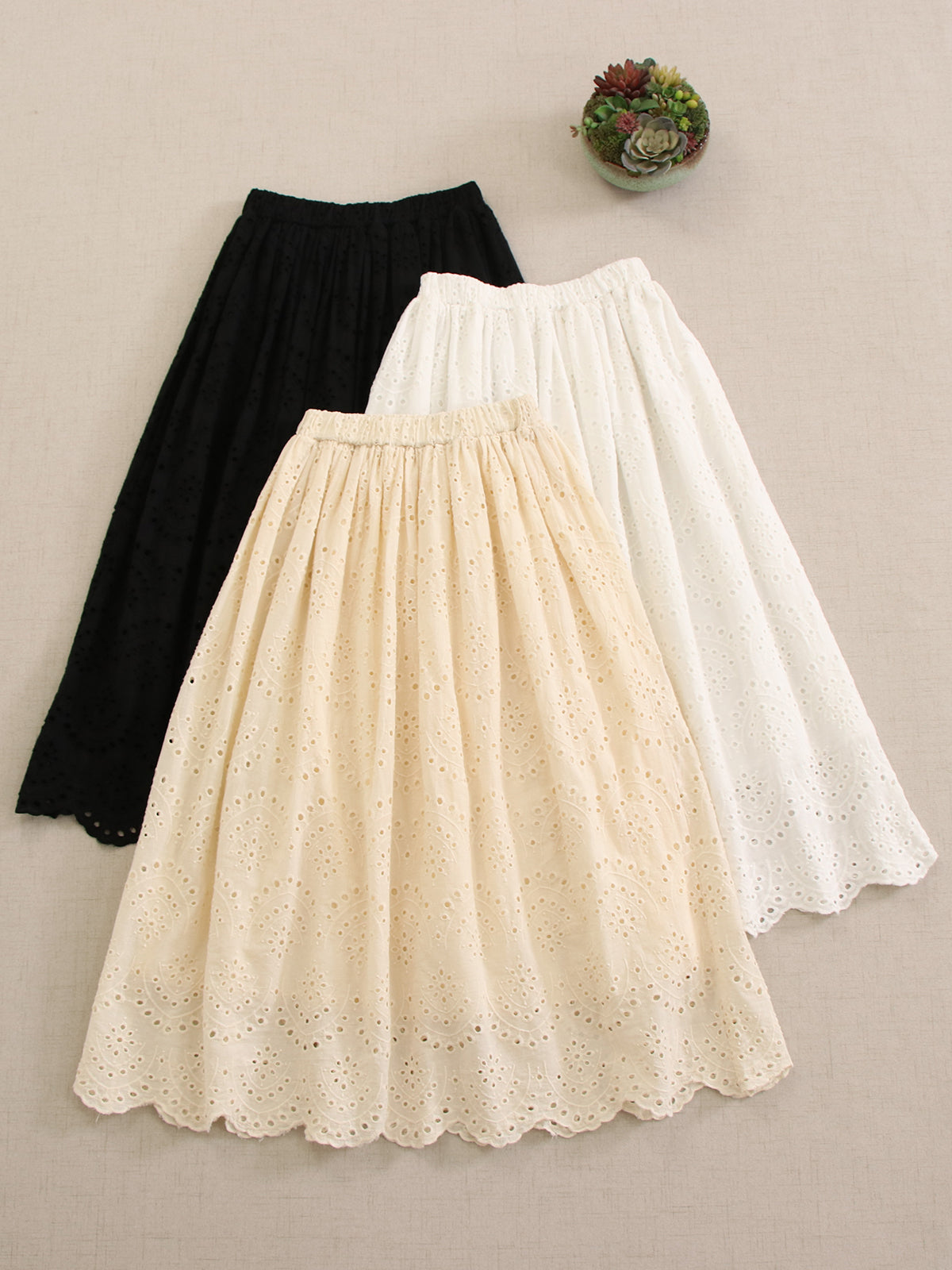/ Eyelet Lace Cotton Skirt
