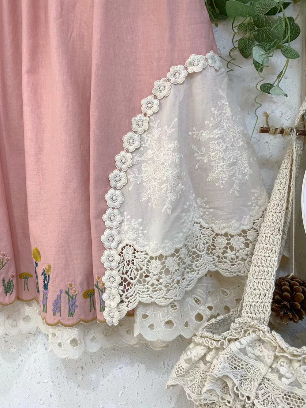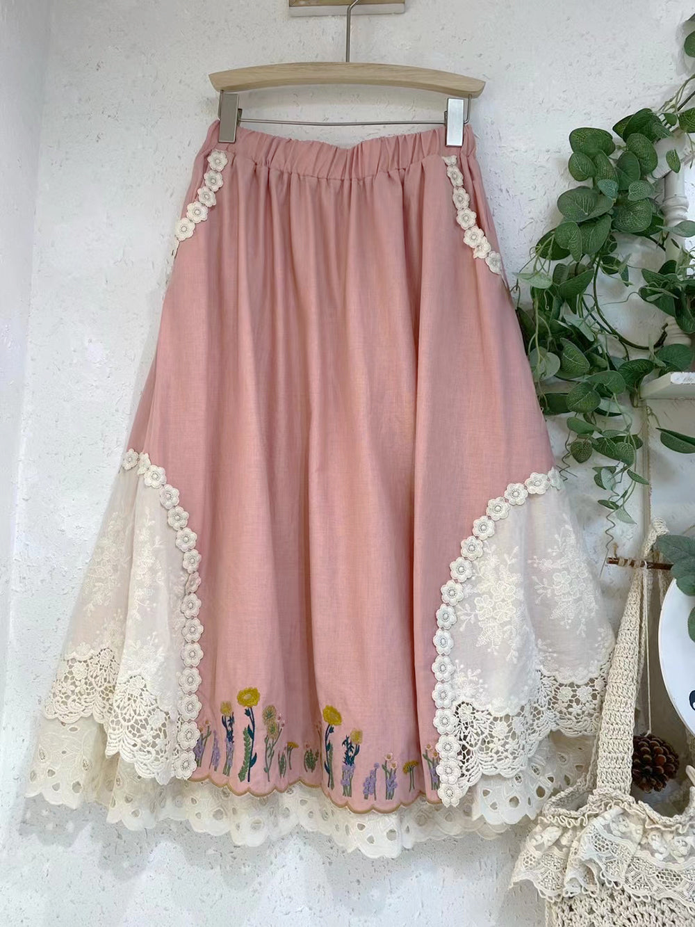 Linen Forest Girl Floral Embroidered Skirt quantity