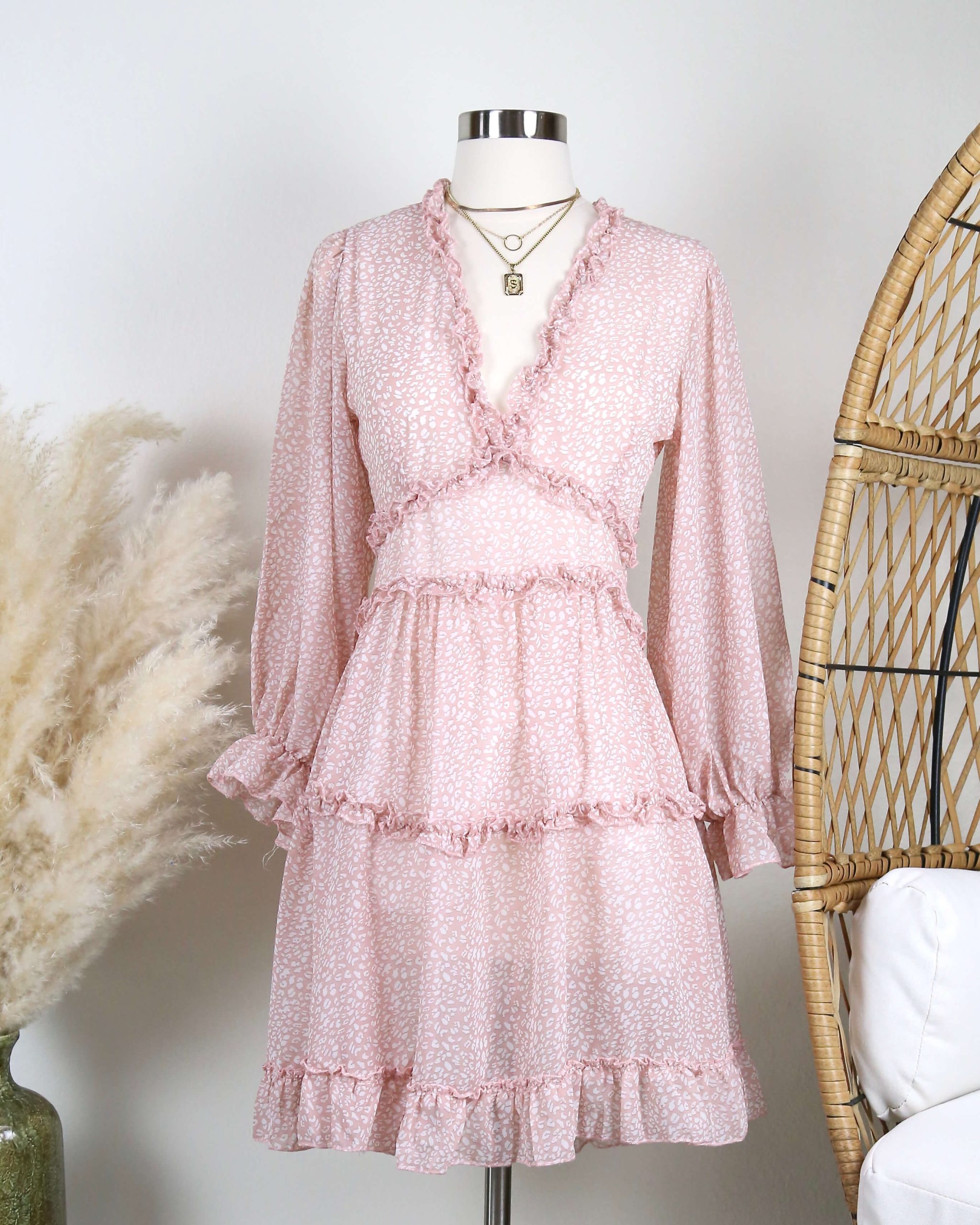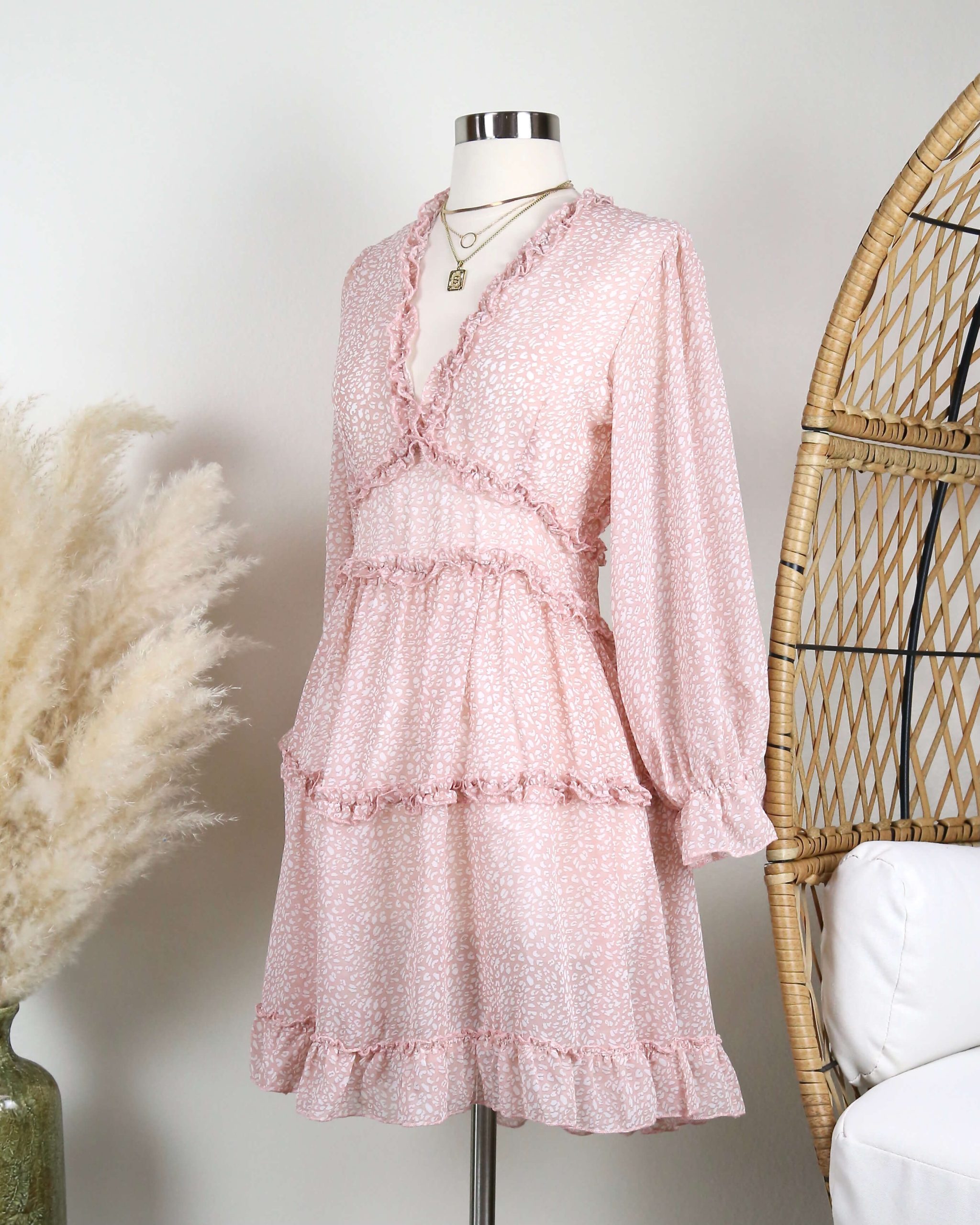 Strawberries & Cream Ruffle Dress in Pink Leopard